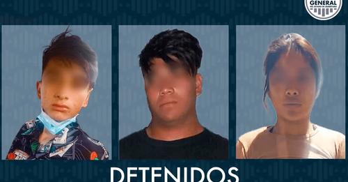 Los detenidos son una mujer de 21 años, identificada como María Guadalupe ‘N’, Jorge Armando ‘N’, de 19, y José Manuel ‘N’, de 21. Los presuntos implicados fueron presentados ante la autoridad judicial.
