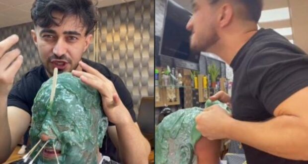 Este video se volvió viral en TikTok, se puede apreciar como depilaron toda la cabeza de un hombre con cera, cubriéndole hasta por párpados.