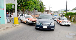 Le dio una caricia de varios miles de pesos a una Honda casi nueva Ernesto Granados/Acayucan Ver. – Daños materiales valuados en varios miles de pesos y un fuerte congestionamiento vial, generó la imprudencia del conductor del taxi 896 de …
