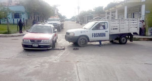 Camioneta le dio su llegue en el Barrio Cuarto luego de no respetar la preferencia Ernesto Granados/Oluta Ver. – Conductor de una camioneta Nissan NP300 color blanco con placas de circulación XU-46-554, con razón social “Fosmon Construcciones S.A. de C.V”, …