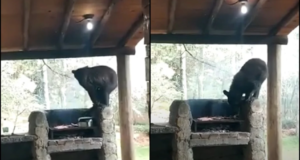 VIDEO: Oso en carne asada: ¡Les roban las carnitas!