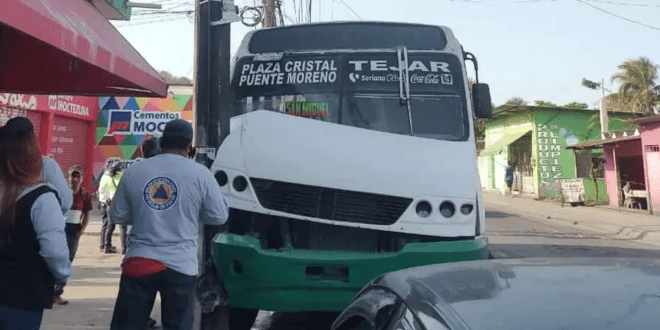 Los hechos ocurrieron cuando el camión de la ruta Arboledas San Miguel marcado con el número 165 chocó contra un poste de la Comisión Federal de Electricidad en la calle Independencia y Gómez Farías.