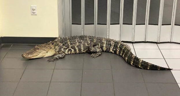 Un aligátor de más de dos metros de longitud se apareció en el vestíbulo de una sucursal del Servicio Postal de EE.UU. ubicada en el condado de Hernando (Florida).