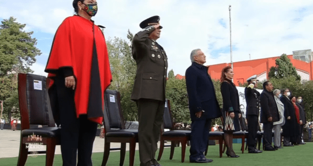 09:12: Se entrega la condecoración Miguel Hidalgo, en grado cruz, al personal médico y de enfermería por su esfuerzo para atender pacientes con Covid-19. Se entona el toque militar 3 de diana.