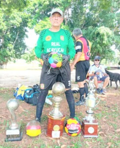 Acayucan. – El equipo del Real Acayucan de la categoría Mas 60 Plus de esta ciudad, está de luto por el fallecimiento del gran portero Daniel Pinto Moreno a quien le sacaron la roja cuando estaba en la portería en una jugada brusca, hoy sus compañeros se quedan sin su portero consentido quien en muchas ocasiones le dio el triunfo al Real Acayucan con sus ‘’paradones’’ que a la afición levantaba de sus butacas.