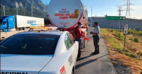 En las inmediaciones del municipio de Santa Catarina, Nuevo León, integrantes de la Guardia Nacional detuvieron a una persona que transportaba 48 mil litros de hidrocarburo, con documentos apócrifos.