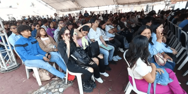 Desde las 8 de la mañana comenzaron a llegar los jóvenes de los diferentes municipios de la región sur al recinto, donde se acomodaban primero en una fila larguísima y después eran acomodados en hileras.