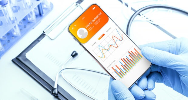 Healthcare app medical technology. Doctor holding digital smartphone. Healthcare medicine app on mobile phone screen. Health Check with digital system support.