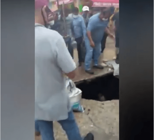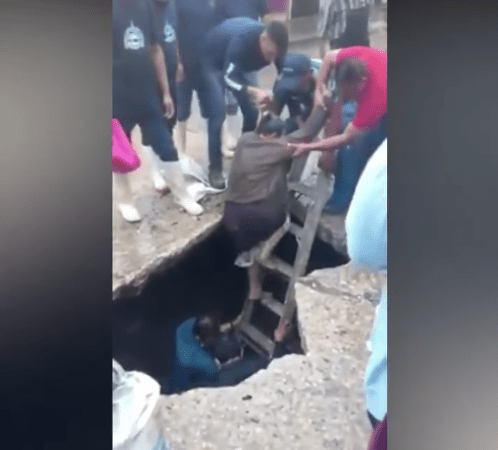 En las últimas horas se ha viralizado un video donde se puede ver el rescate de una mujer de edad avanzada que cayó a un socavón en la ciudad de Villahermosa, capital del estado de Tabasco.