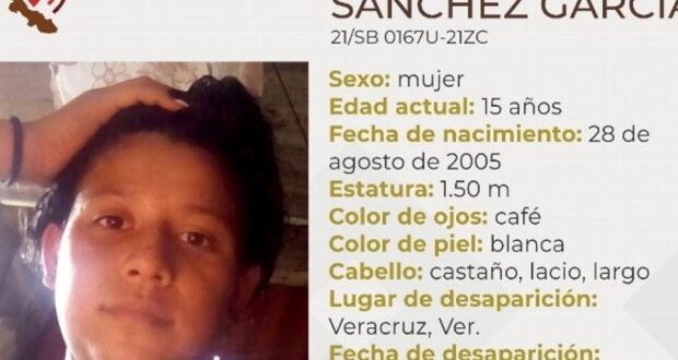 De acuerdo con la ficha de búsqueda emitida por la Comisión, Sánchez García, de 15 años de edad, fue vista por última ocasión en la ciudad de Veracruz.