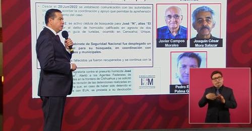 Los cuerpos de los dos sacerdotes jesuitas y el guía de turistas asesinados en Cerocahui, Chihuahua, ya fueron recuperados por las autoridades, informó el subsecretario de Seguridad, Ricardo Mejía Berdeja.