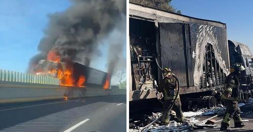 Se incendia tráiler que transportaba productos de aseo personal en la México-Cuernavaca y provoca caos vial