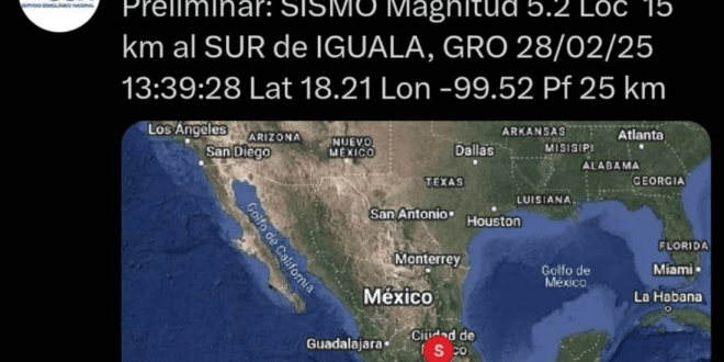 Se registra sismo de magnitud 5.5 con epicentro en Iguala, Guerrero