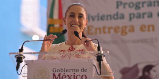 La Jefa del Ejecutivo Federal destacó que Vivienda para el Bienestar es muestra de que la Cuarta Transformación lleva en el nombre justicia para los trabajadores, para las mujeres, para todas las mexicanas y mexicanos.