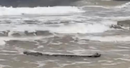 Un imponente cocodrilo, cuyo hábitat habría sido invadido, fue captado la tarde de este martes en las playas de Tulum, en Quintana Roo.