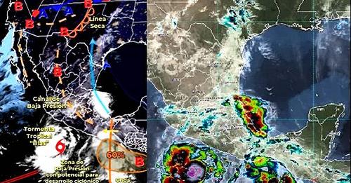 Por otra parte, Conagua señala que la tormenta tropical Blas tiene un desplazamiento hacia el nor-noroeste, intensificándose paulatinamente.