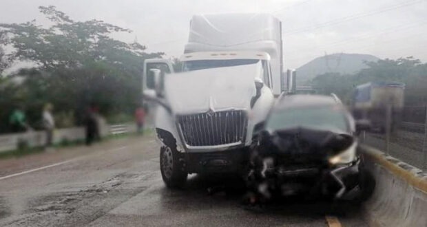 Un tráiler de la empresa Aceros Lasa embistió a 8 vehículos que estaban parados en la Autopista del Sol debido al bloqueo que realizaron indígenas de San Jerónimo Palantla respaldados por normalistas de Ayotzinapa, a la altura del Parador del Marqués.