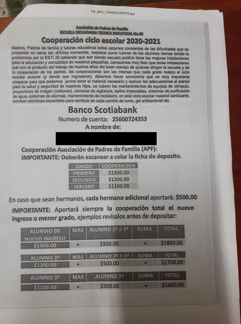 Consideró que en años anteriores, los padres de familia pagaron la inscripción pues estaban en la posibilidad económica de hacerlo, por lo que pide comprensión de la escuela para que los niños y niñas puedan seguir con sus estudios.