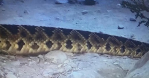 En la grabación se puede ver a la víbora de cascabel pasear a la orilla del río.