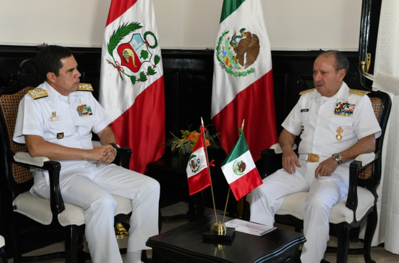 Por otra parte, el Almirante Secretario de Marina sostuvo un encuentro con el Almirante Alberto Alcalá Luna, Comandante de la Marina de Guerra del Perú, con quien trató los temas de interés entre ambas naciones, como el intercambio profesional y académico, reuniones de Estados Mayores y Bilateral de Inteligencia entre ambas Instituciones, así como participación en diversos Ejercicios Multinacionales.