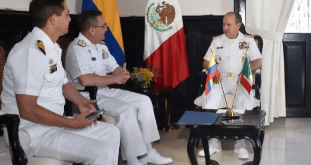 El Alto Mando de la Armada de México se reunió con el Contralmirante Carlos Hernando Oromas Maldonado, Jefe de Operaciones de la Armada de Colombia, para refrendar los lazos de amistad y cooperación que existen entre ambas Armadas, como el profesional y académico, asimismo, se trataron diversos temas de interés, como la participación en la “Expodefensa Colombia”, la cual reúne a la industria internacional de las Fuerzas Armadas, exhibiendo desarrollos de defensa y seguridad; así como la Cumbre ORIÓN, que tiene como objetivo potenciar las respuestas conjuntas contra el narcotráfico y fenómenos ilegales asociados al dominio marítimo, en pro de la seguridad regional e internacional.
