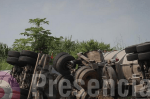Un autotanque doble remolque cargado con turbosina terminó volcado sobre la carretera federal 185 Transístmica, en el tramo correspondiente al libramiento Sayula–Aguilera. De acuerdo con reportes de la Coordinación Municipal de Protección Civil, el percance ocurrió cerca de las …