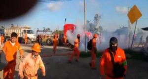 En redes sociales circularon imágenes de trabajadores heridos durante el segundo día de su protesta por incumplimiento de pagos y extorsiones de las que dicen ser objeto. AGENCIAS.- Alrededor de las siete y media de la mañana se registraron enfrentamientos …
