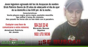 Desde el martes salió de su casa y no ha vuelto, no responde las llamadas ni los mensajes Carlos GONZÁLEZ ALONSO Acayucan, Ver.- Familiares reportan la desaparición de un joven ingeniero egresado del Tecnológico de Acayucan pues no responde las …