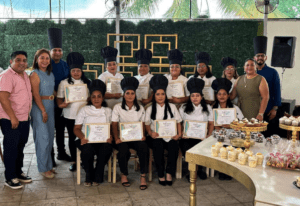 Durante el acto, se realizó la tradicional imposición de gorros de repostería como símbolo del esfuerzo y compromiso de las participantes. Asimismo, se contó con la presencia del ciudadano Juan Carlos Bocardo Sánchez, quien, junto con las autoridades presentes, hizo entrega de reconocimientos a las alumnas egresadas.