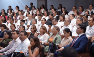 La presidenta de la Comisión Permanente para la Atención y Seguimiento de la Regularización y Situación Jurídica de los Predios Escolares expresó que “45 años no son solo una cifra; son generaciones enteras de hijas e hijos de campesinos, de pescadores, de obreros, que pudieron soñar más allá de sus límites inmediatos; son maestras y maestros que caminaron veredas, cruzaron ríos y recorrieron caminos de terracería para llegar a un salón improvisado, donde, con un pizarrón y unas pocas bancas, hicieron lo imposible: sembrar la semilla del conocimiento”.