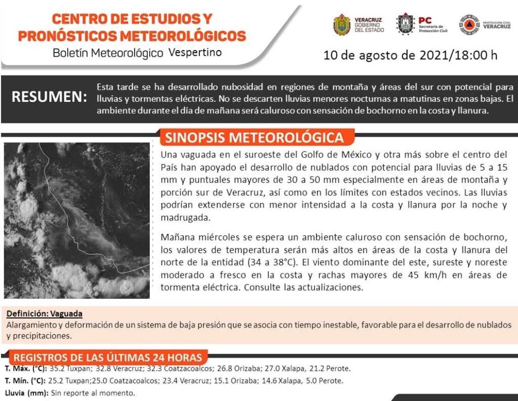 Continuará el potencial para lluvias y tormentas eléctricas en zonas de montaña y sur de Veracruz 10/08/2021 Estado 5 Views Share Agencias/Veracruz