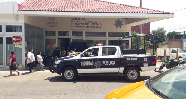 La tarde de ayer, una patrulla de la policía estatal con cuatro elementos a bordo se apostó a un costado de la oficina de Hacienda del Estado, donde también funciona un centro de copiado e impresión de documentos no oficiales, «pues no llevan sello ni folio».