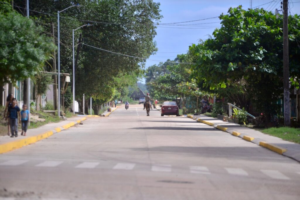 La obra consiste en carpeta hidráulica con guarniciones y banquetas, señalización y luminarias, en uno de los municipios que forman parte del Corredor Interoceánico del Istmo de Tehuantepec, donde también la coordinación en materia de seguridad es evidente.