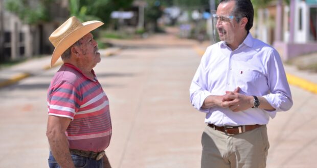 AGENCIAS.- Después de anunciar nuevos operativos de seguridad para la zona sur por Navidad y fin de año, el gobernador Cuitláhuac García Jiménez supervisó la pavimentación de la calle Benito Juárez en la localidad Almagres, de este municipio.