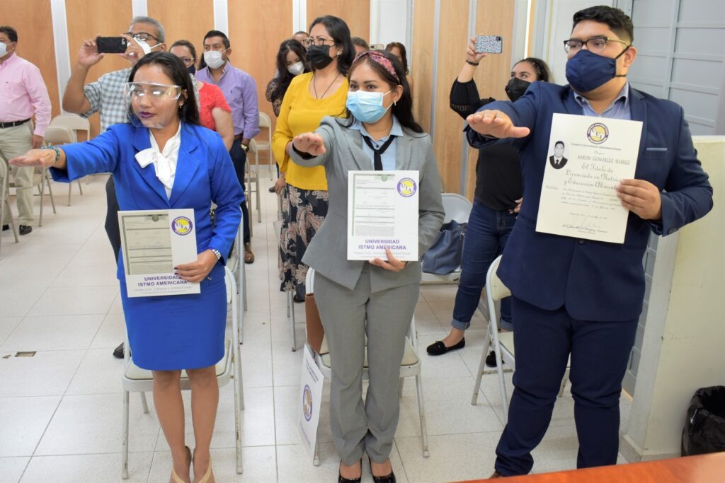Coatzacoalcos, Ver. – Con todas las medidas preventivas contra el Covid-19, la Universidad Istmo Americana entregó el viernes nueve títulos profesionales a egresados de cinco licenciaturas.