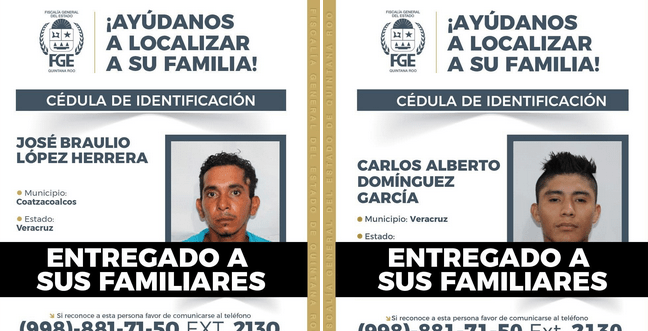 Las víctimas fueron identificadas como José Braulio López Herrera, originario de Coatzacoalcos, y Carlos Alberto Domínguez García, del municipio de Veracruz. Con el respaldo del Gobierno del Estado de Quintana Roo, los restos fueron enviados a sus lugares de origen para ser sepultados conforme a las tradiciones de sus comunidades.
