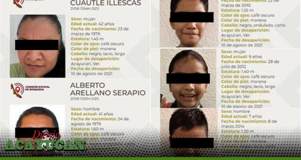 Los desaparecidos son: el papá Alberto Arellano Serapio, de 41 años; su esposa Mireya Cuautle Illescas; y sus pequeños hijos Arelit Melina Arellano Cuautle, de 9 años; Alberto Yeret Arellano Cuautle, de 11 años; Alberto Valentín Arellano Cuautle, de 7 años.
