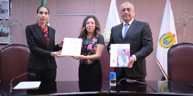 Xalapa, Ver., 04 de diciembre de 2025.- La presidenta de la Mesa Directiva de la LXVII Legislatura, diputada Naomi Edith Gómez Santos, recibió de la titular de la Fiscalía General del Estado (FGE), Verónica Hernández Giadáns, el informe anual de labores 2025, que incluye las actividades y principales acciones realizadas en materia de procuración de justicia del organismo autónomo.