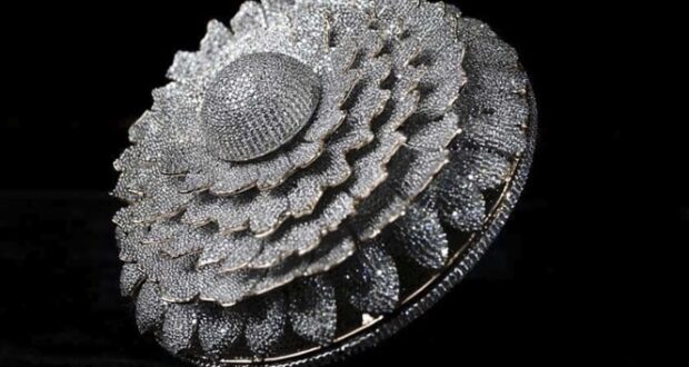 Este anillo cuenta con 12 mil 638 diminutos diamantes incrustados por lo que logró batir un récord mundial.