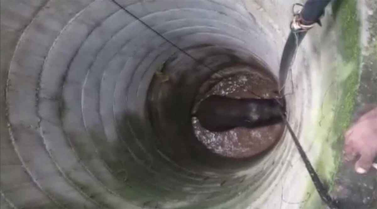 Los vecinos oyeron ruido y vieron al animal estaba en el pozo», contó Rajkumar.