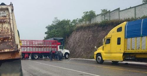 La corporación comparte imágenes de la carretera bloqueada por unidades de carga y llama a que se atienda la indicación vial.