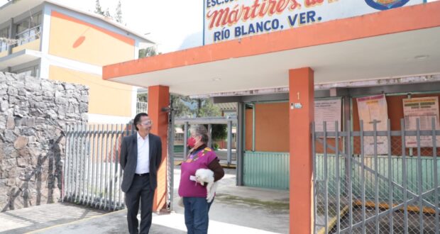 Río Blanco, Ver., 04/12/20.- A nombre de la comunidad escolar de la Secundaria Mártires de 1907, de esta cabecera, la directora Marisa González Peña agradeció al gobernador Cuitláhuac García Jiménez por la rehabilitación del inmueble, el cual tiene más de 60 años de historia.