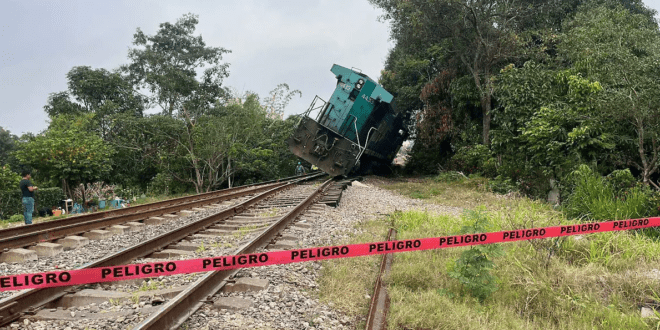 Durante la mañana de ayer una locomotora (junto con dos vagones) que cruzaba por la colonia San Román del municipio de Chinameca, al sur del estado de Veracruz, se descarriló, no hay reporte de personas lesionadas.