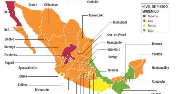 AGENCIAS.- Veracruz es el tercer estado, junto a Campeche y Chiapas, en estar en color verde dentro del semáforo epidemiológico que estará vigente del 7 al 20 de diciembre, mientras que Zacatecas y Baja California regresarán al semáforo rojo. Además, 10 estados están en riesgo de transitar del color naranja al semáforo rojo y la Ciudad de México encabeza la lista.
